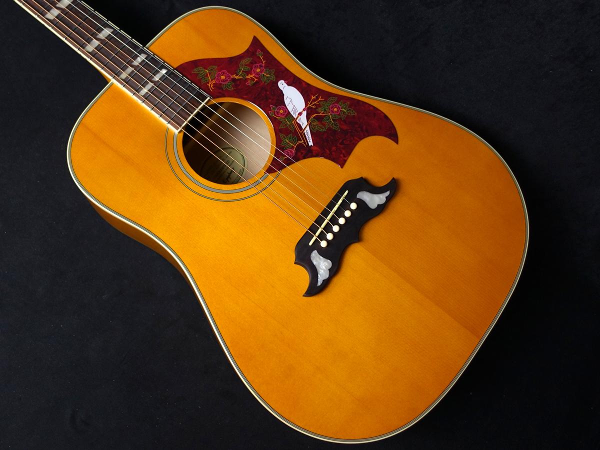 Epiphone Dove Studioは、1960年リリースのGibson Hummingbirdから2年後に登場した、ギブソンにとって2番目のスクエアショルダー・ドレッドノートギターデザインであるGibson Doveを基に開発されました。