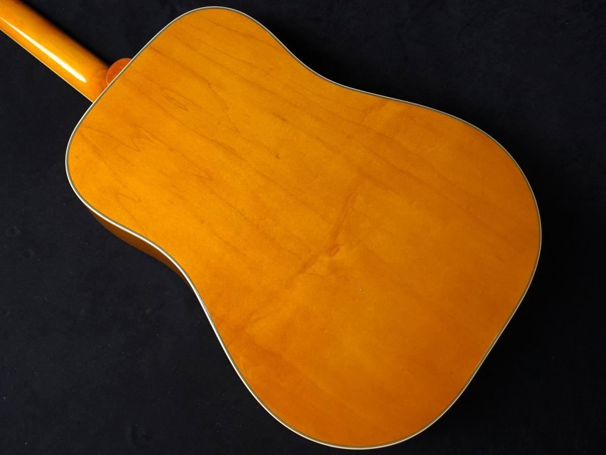 様々な音楽ジャンルのプレイヤーに愛されてきた象徴的なギブソン・ダヴ・アコースティックギターのデザインをベースに、合板メイプルボディ、単板スプルーストップのスクエアショルダー・ドレッドノートシェイプ、25.5インチスケールを採用。