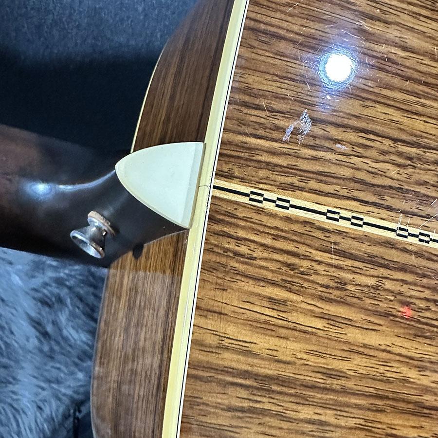 ブリッジ上部の塗装がやや浮いております。ブリッジ自体は剥がれておらず演奏性には問題ございません。