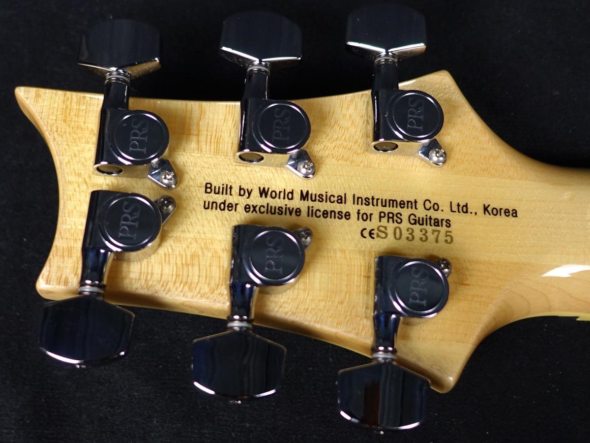 メイプルトップ、マホガニーバック採用のPRS伝統のボディシェイプにメイプルネック、エボニー指板を採用したウッドマテリアル。