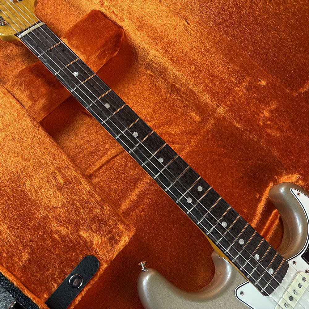 1965 Stratocasterは、1965 “C”シェイプメイプルネックに、大きめのパールドットインレイを採用したラウンドラミネイトローズウッド指板を備えているのが最大の特徴です。