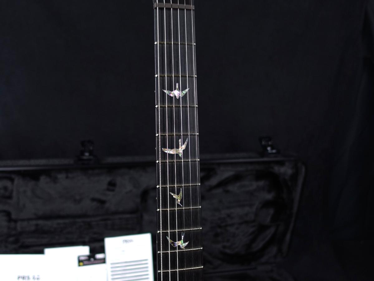 創業初期のPRS Guitarsへのオマージュとして、エボニーを使用した指板とヘッドストックには、それぞれオールドスクール・バード・インレイと、プリ・ファクトリー期のイーグル・インレイが施されています。