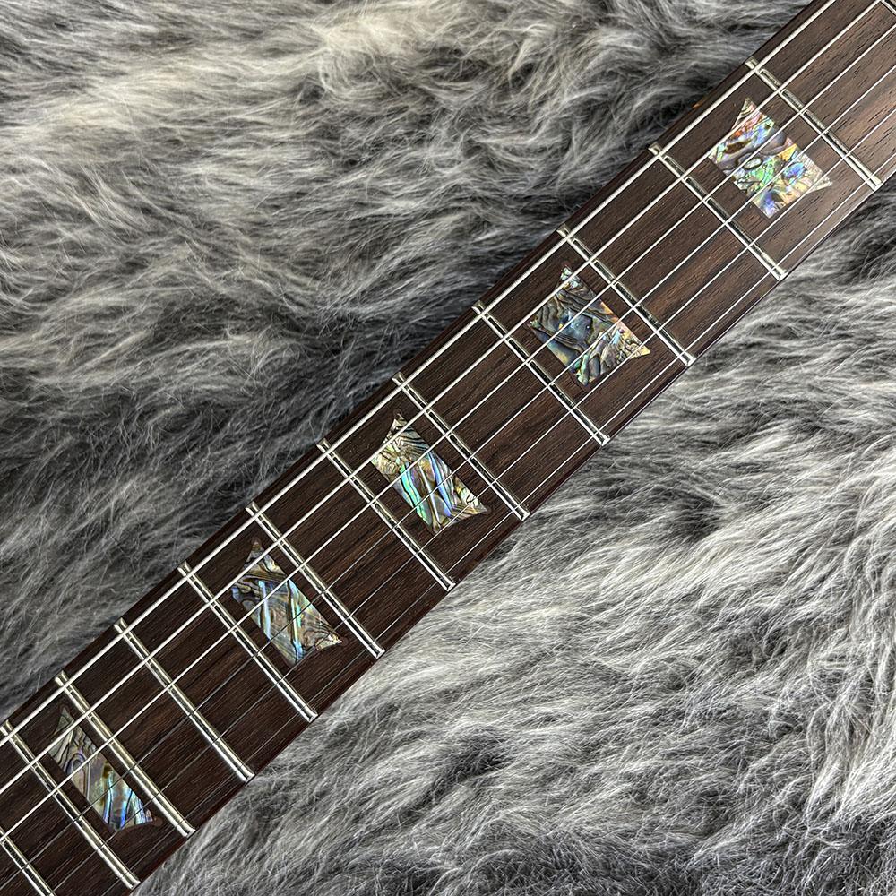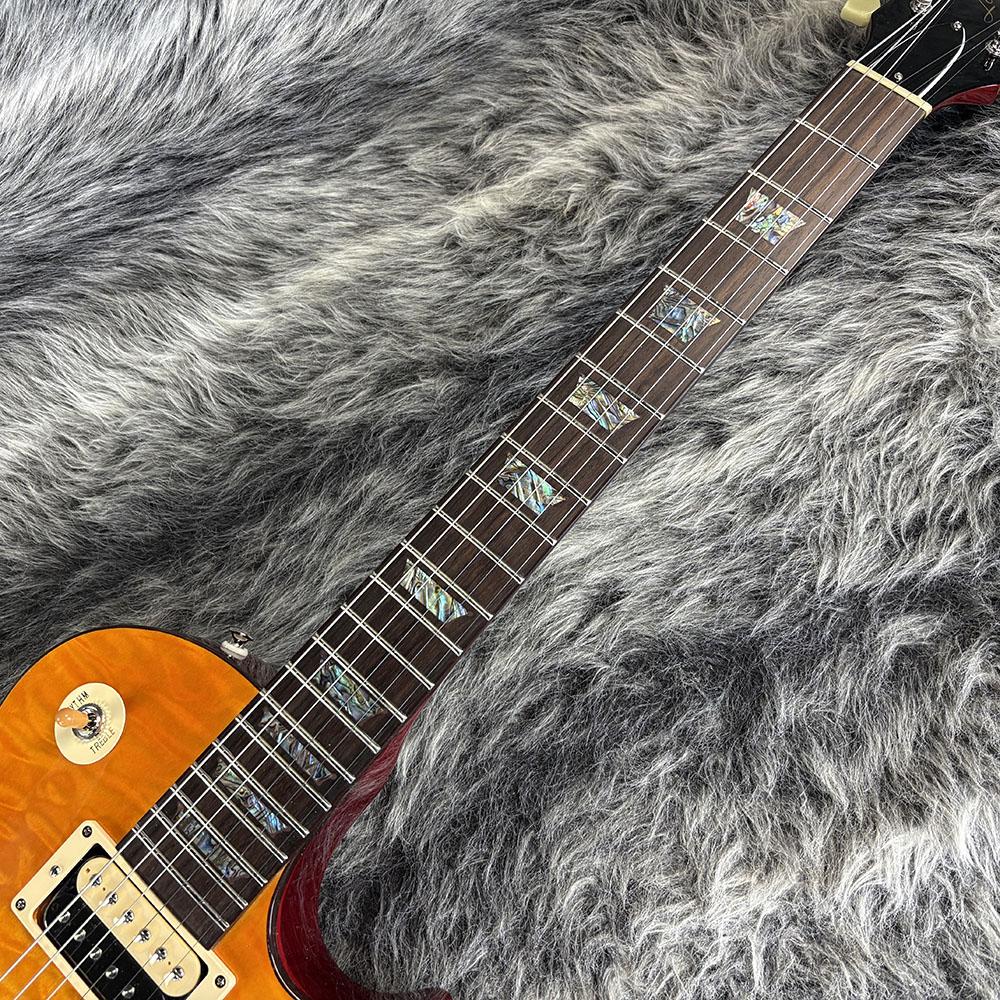 メイプルトップにチェンバー加工が施された2ピースマホガニーバック、スリムなシェイプの1ピースマホガニーネック、ローズウッド指板というスペックに、ゴージャスなキルトメイプルをあしらい、オープンカバー/ゼブラボビン仕様のオリジナルハムバッカーPAF Vintage MK-2を搭載し、指板にはゴージャスなアバロンインレイを採用しています。