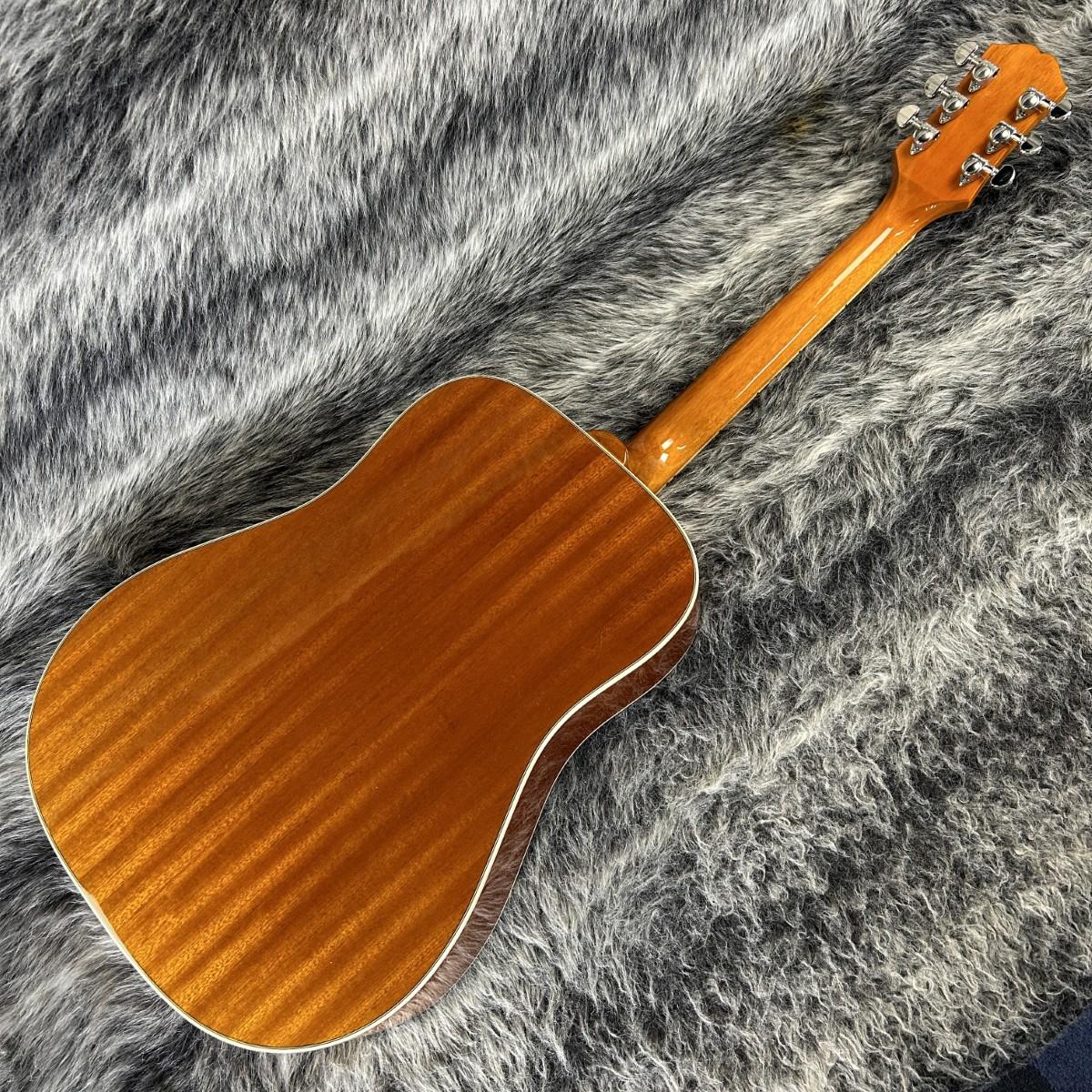 スプルース単板トップ、マホガニーサイド&バックのスクエアショルダーボディを採用しており、音も大きくダイナミックなサウンドが響きます。