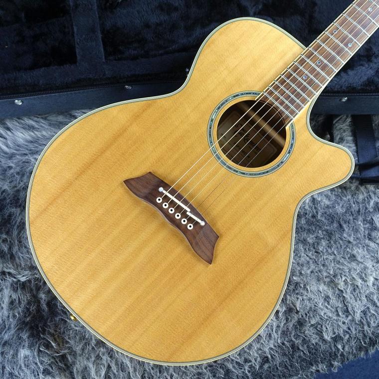 薄いボディに630mmのショートスケールを採用しており自宅で爪弾くのにちょうどいいサイズ感のギターですし、CT-IIINを搭載したエレアコ仕様なのでステージでも活躍の見込める一本。