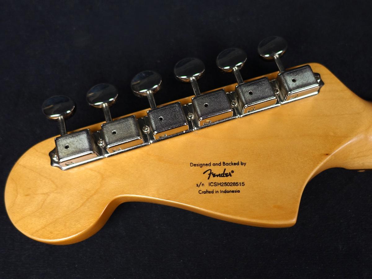 滑らかな9.5インチラジアスの指板とタイトなフレットを備え、スリムで快適なC型のネックプロファイル、表情豊かなベンディングに効果を発揮する、ヴィンテージスタイルのトレモロシステム、バレル付きフローティングブリッジサドルを備えています。