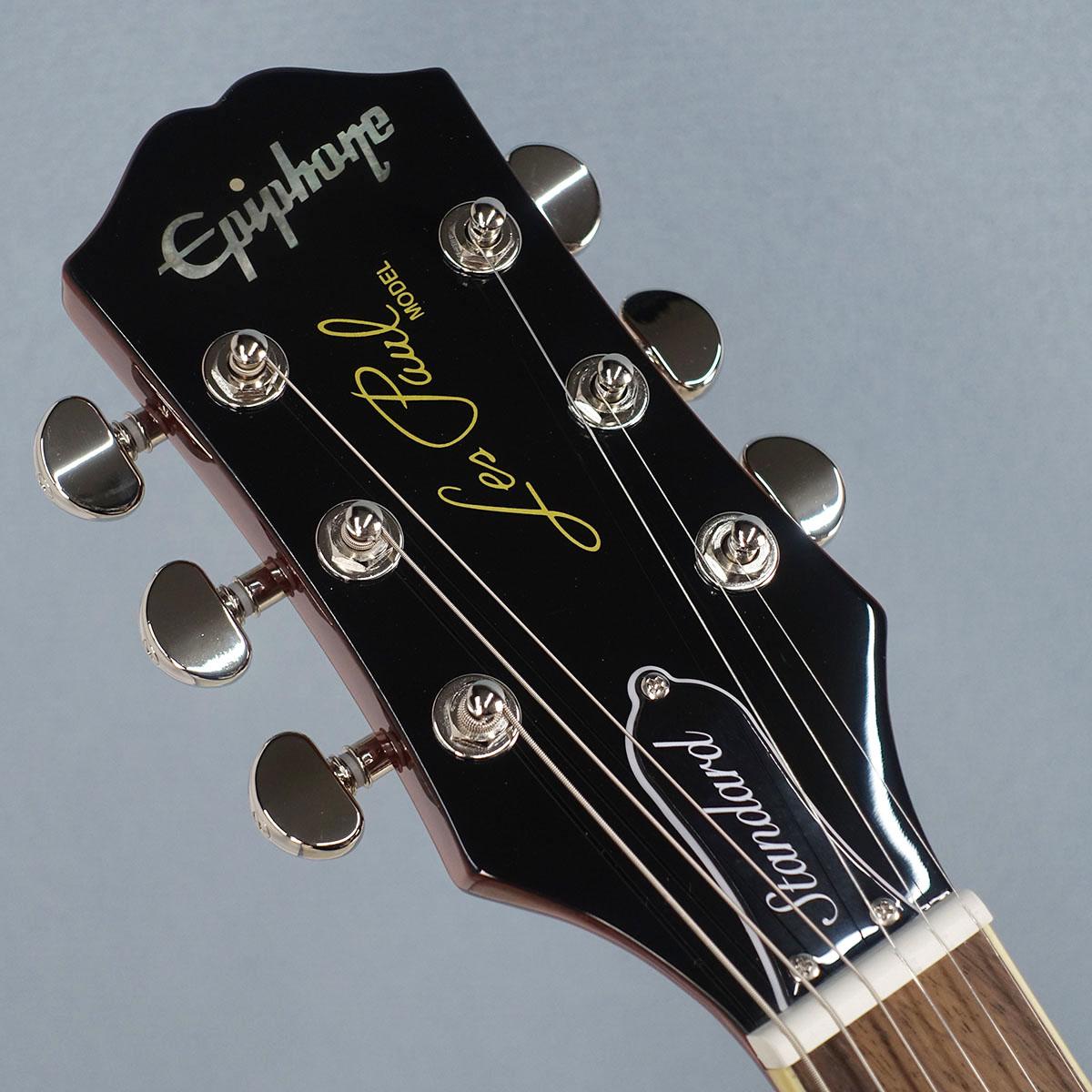 ローレル指板上ではパーロイド素材のディッシュインレイが施され、ミディアムジャンボフレットを採用。60s SlimTaperプロファイルのネックシェイプはスムーズな演奏性に寄与し、ヘッド部に装着されたGrover RotomaticチューナーとGraph Techナットは安定したチューニングをもたらします。エピフォンの定評ある2基のProbuckerピックアップを採用し、ネックポジションにはProbucker 2を、ブリッジポジションには出力が高めに調整されたProbucker 3を搭載。