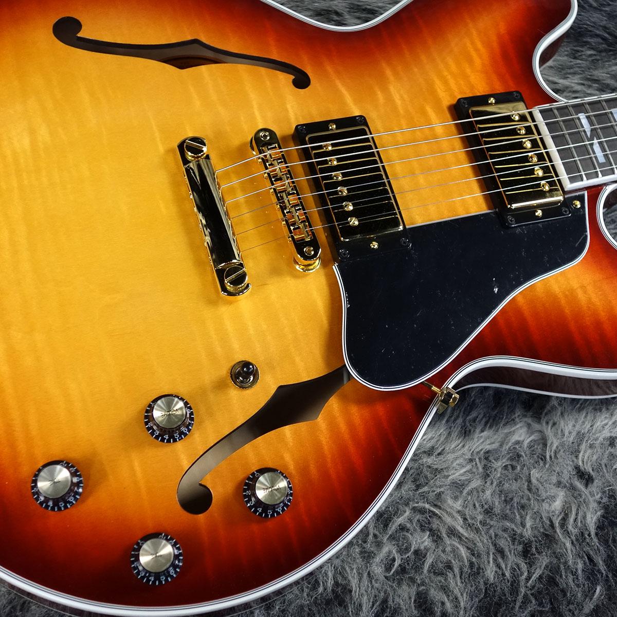ES Supremeは、その伝統的な多用途性をさらに発展させ、AAAフィギュアド・メイプル・トップの3プライ・ボディ、スーパースプリット・ブロック・マザーオブパール・ネック・インレイ、ゴールド・ハードウェア、