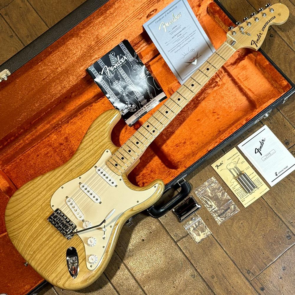 ナチュラルフィニッシュのアッシュボディに1ピースメイプルネック、ラージヘッド、ブレットナット、2ストリングガイド、3点止めジョイントプレート、Fキーチューナー、スタガードポールピースetc...1973年のストラトキャスターの仕様を再現した一本。ピックアップは現在は第一線を引退してしまったPUマイスター“Abigail Ybarra(アビゲイル・イバラ)”氏によるハンドワウンドPUを搭載しています。