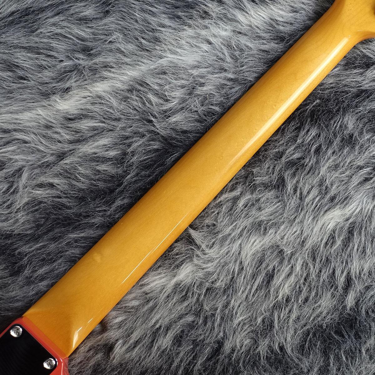 ネックカラーは飴色の強いクリアを採用し、ポジションマークにはクレイドットタイプに変更することでヴィンテージライクな雰囲気を演出しています。