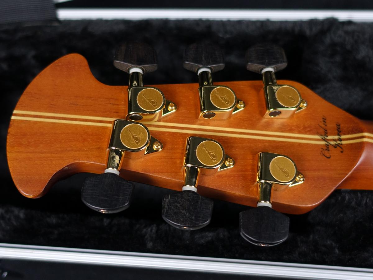 その他ウッドマテリアルはネック材に5Pマホガニー/メイプル、指板/ブリッジ材にはエボニー、エポーレットにはエキゾチックハードウッドを採用しております。