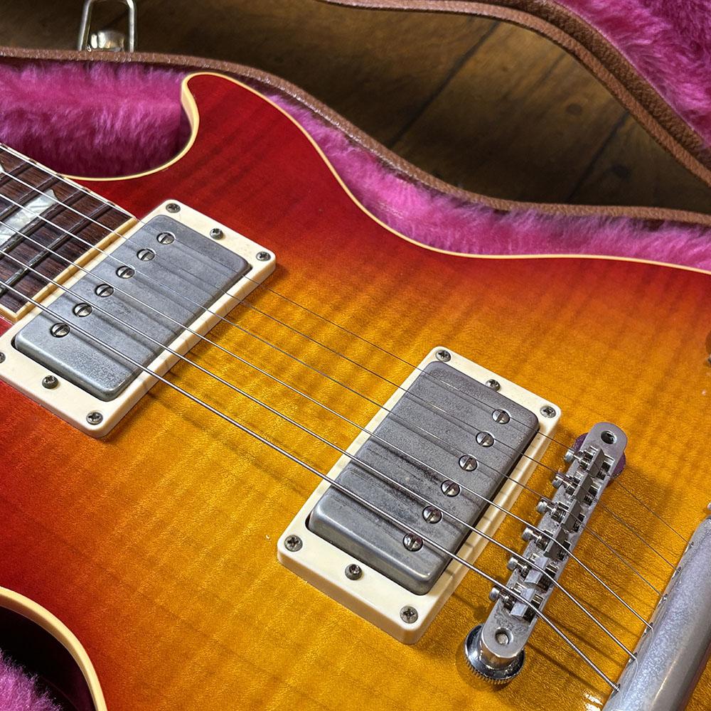とてもバランスのよい杢と王道のヘリテージチェリーサンバーストが特徴の90年製 Les Paul Reisssue。