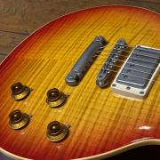杢がとてもバランス良く、王道のヘリテージチェリーサンバーストとも相まってまるでレスポールのお手本のような素晴らしい外観です。