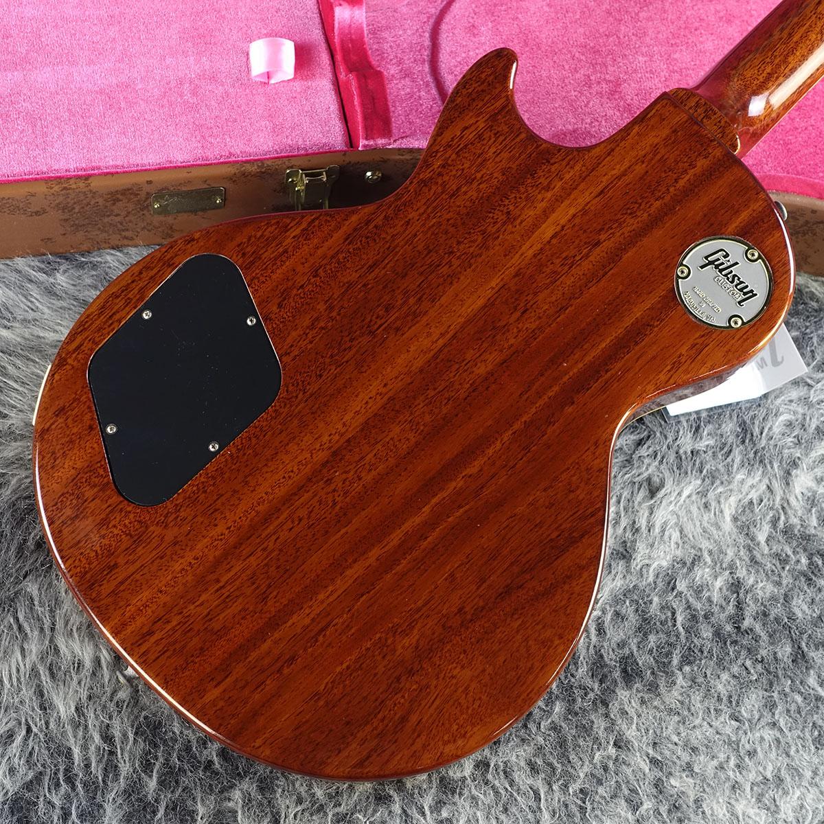 2019年にリファインされ、リアルさを増した“Gibson”&“Les Paul”ロゴ、リアルな色味に変わったディッシュインレイの採用による外観上のブラッシュアップやアンポッテッドのカスタムバッカー、ヴィンテージライクなキャパシターやポットを搭載。