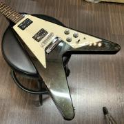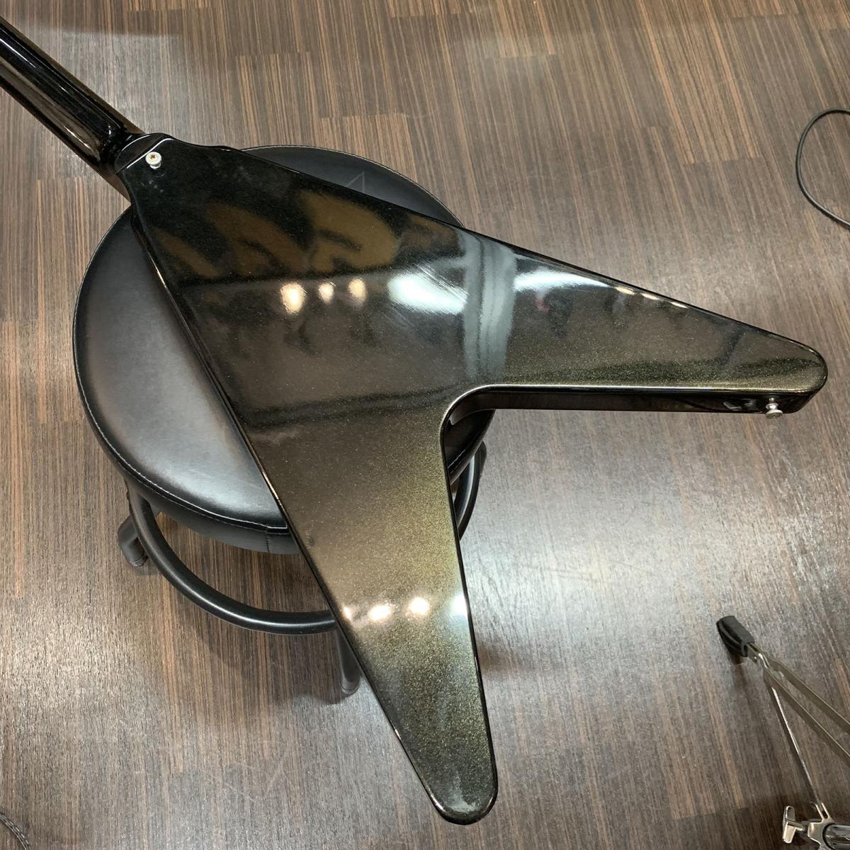 変形ギターの定番Flying V、カラーオーダーと思われる黒ラメ仕様となります。