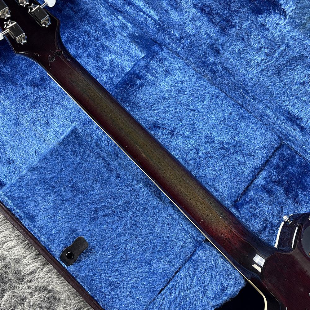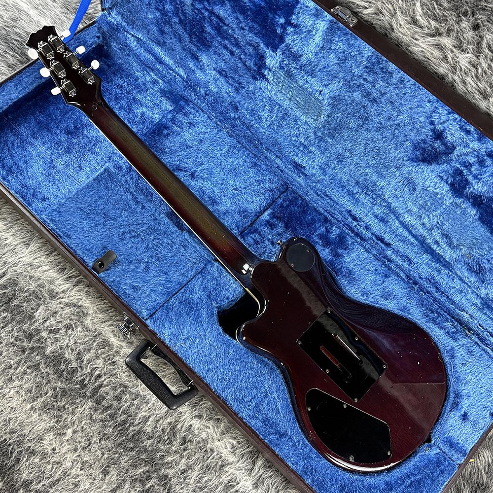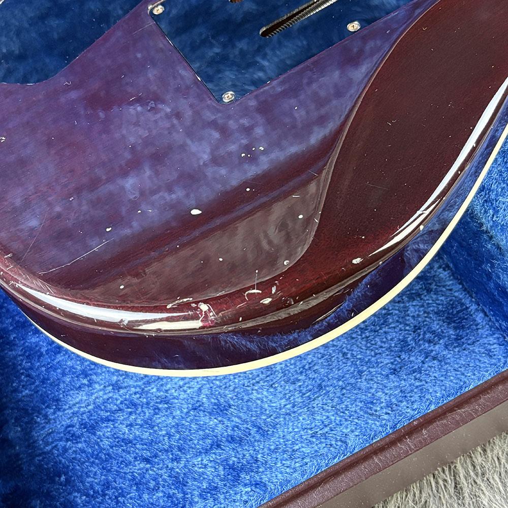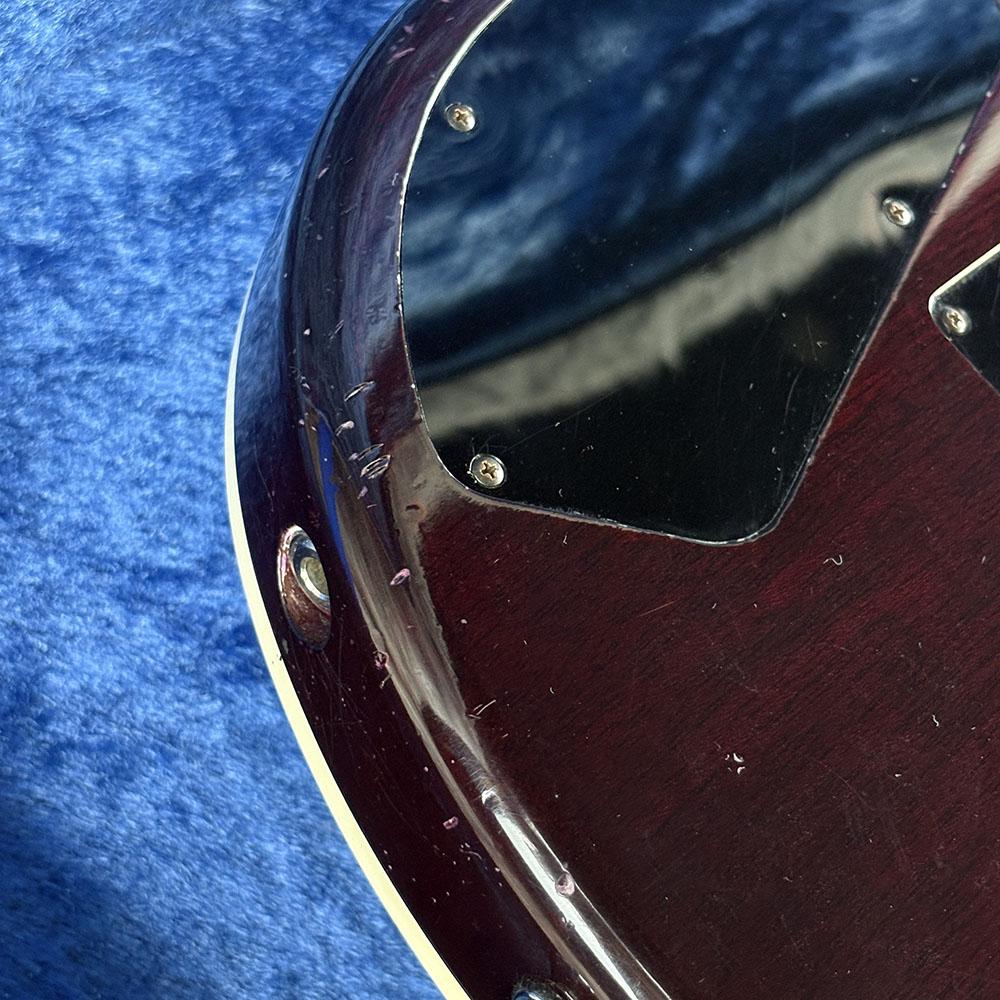 メイプルトップにスプルース、メイプル、マホガニーを組み合わせたセミホロウ構造になっています。
