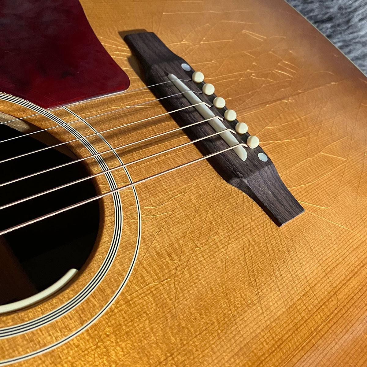 「Hata Motohiro J-45」は、サーマリーエイジド加工が施されたシトカスプルースのトップと、ジェニュインマホガニーのバック&サイドを採用。