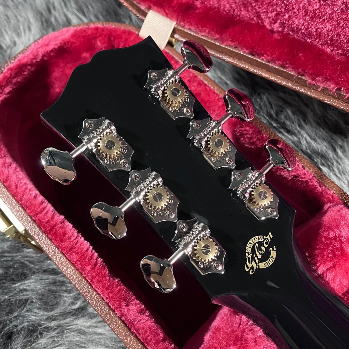 通常はサンバーストにベッコウピックガードですがディーラーセレクト、ロッキンオーダーにてエボニーカラー&ホワイトピックガードが採用されております。
