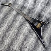 Jackson Pro Signature Mark Heylmun RR24-7は、Gloss Blackフィニッシュにホワイトピンストライプ、7連ペグ式リバースポコンコルドブラックヘッドストック、ゴールドハードウェアを備え、ステージ上で大胆な魅力を解き放ちます。