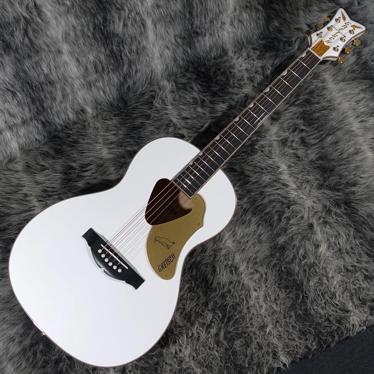 ソリッドスプルーストップ、メイプルバック&サイド、20本のヴィンテージスタイルフレットとパーロイドNeo-Classicサムネイルインレイ、シンセティックボーンナットを備えた12インチラジアスのローレル指板のマホガニーネック、ローレルブリッジ、ゴールドスパークルバインディングと羽付き縦Gretschロゴヘッド、ゴールドプレキシピックガード、ゴールドハードウェアといったステージでの存在感を高めるプレミアムな仕様に加えFishman Presys IIIプリアンプシステムを搭載し、クラシックなスタイリングをモダンなサウンドで引き立てます。