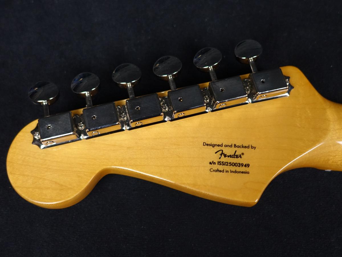 ナロートールフレットを装備した9.5インチラジアス指板のCネックシェイプ、ヴィンテージスタイルのトレモロシステムなど、快適で表情豊かな演奏を実現するスペックを備えています。