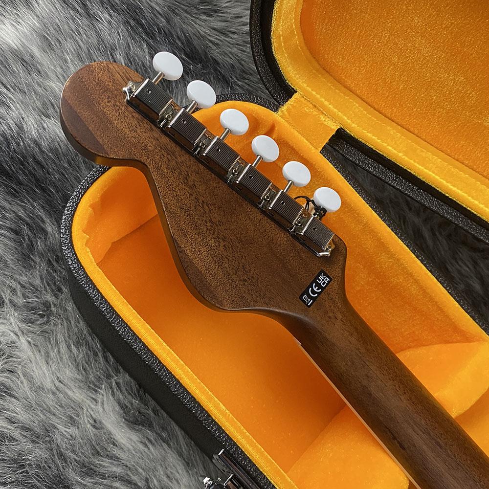 ネックにはモダンな"V"シェイプを採用し、サスティンを最適化する25.5インチのスケール長、ティルトバック式6インラインヘッドストック、メイプルヘッドキャップなど、フェンダーのエレキギターDNAから生まれた独特のルックスを備えています。