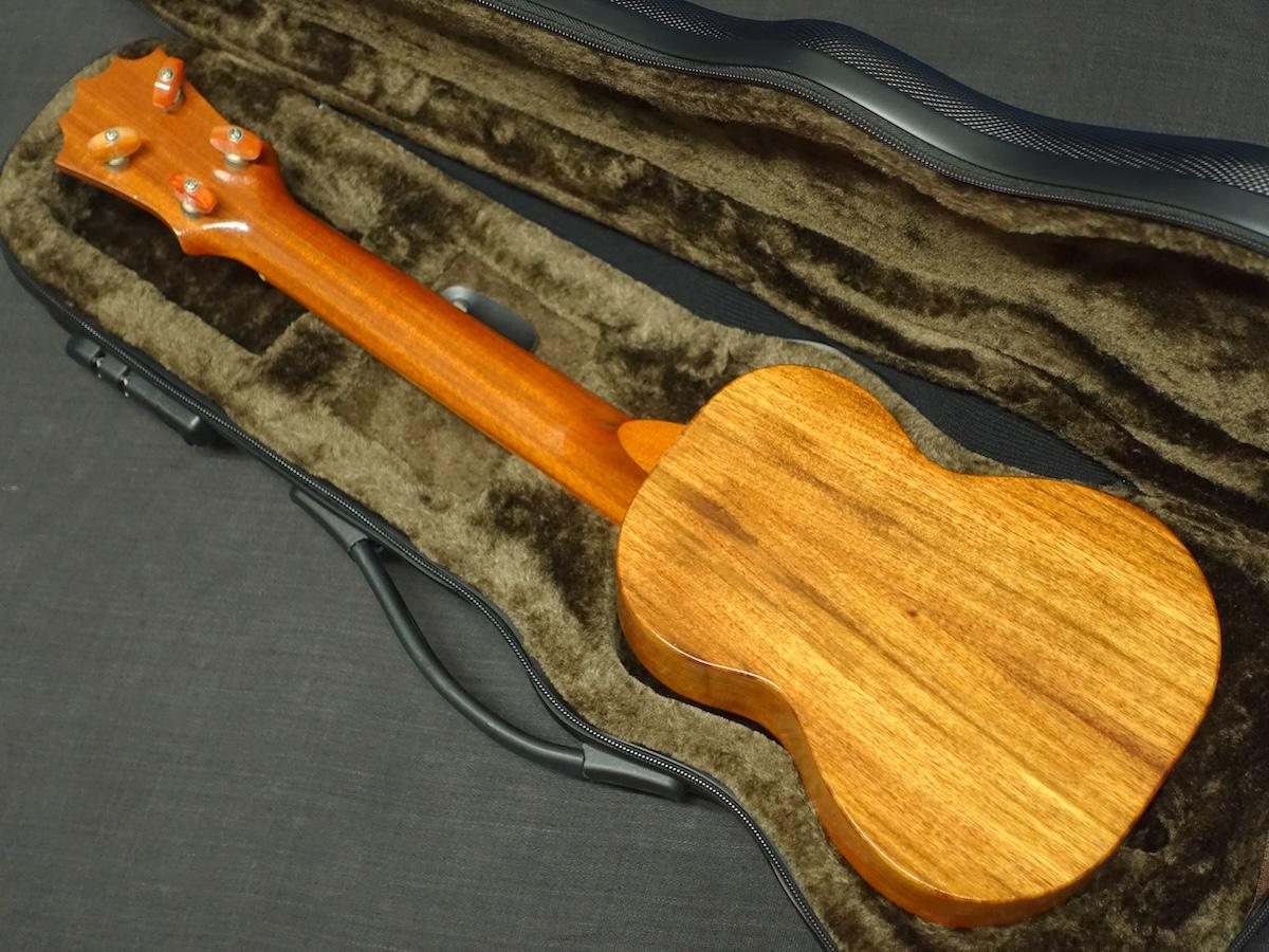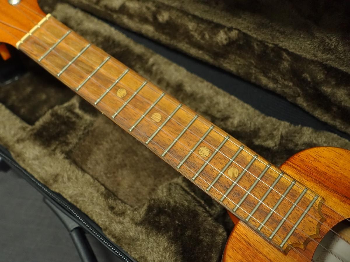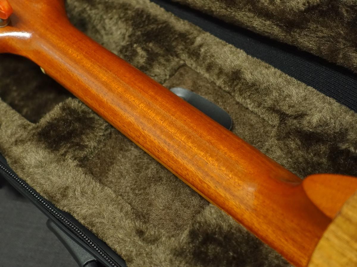 詳細な資料が無い為、外観からの判断となりますが、コア材を用いたソプラノサイズでスケール:約380mmのロングネックモデルです。