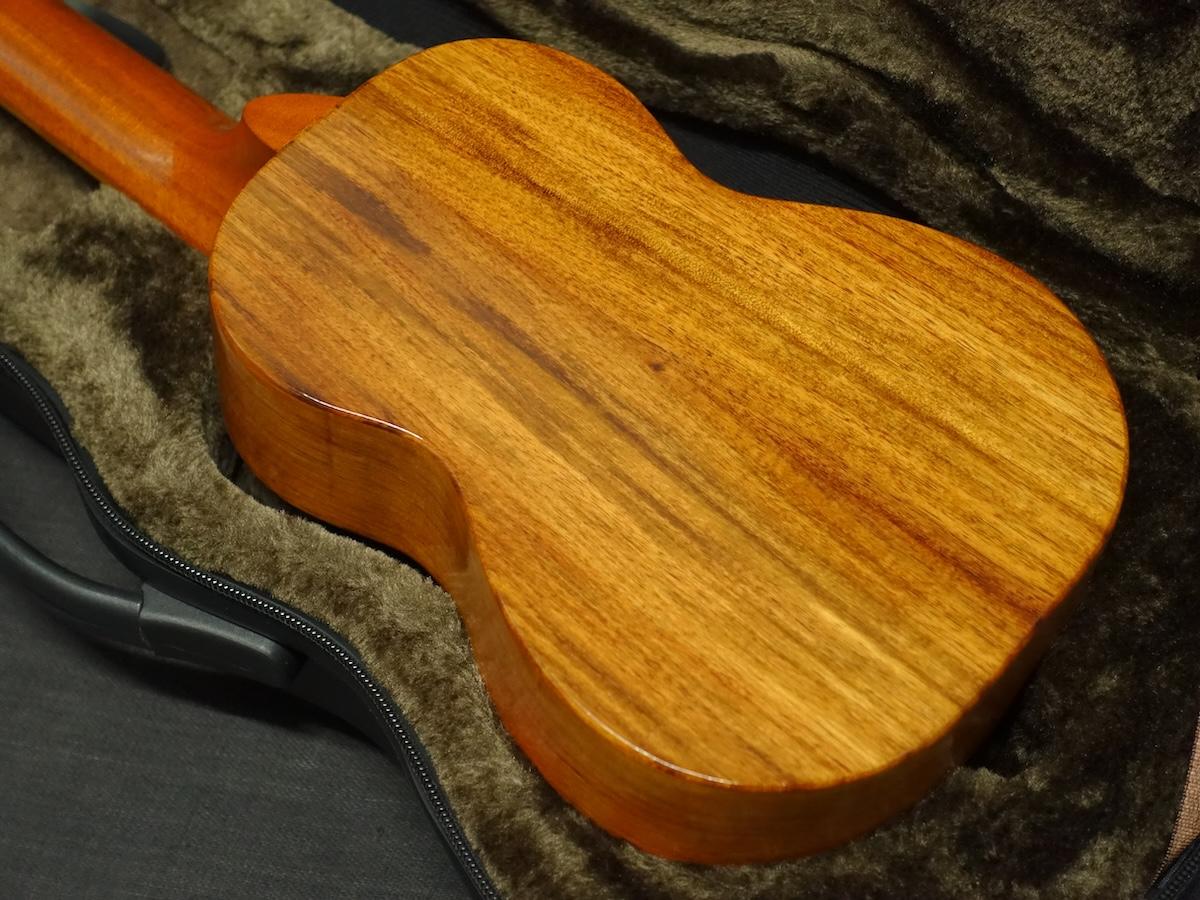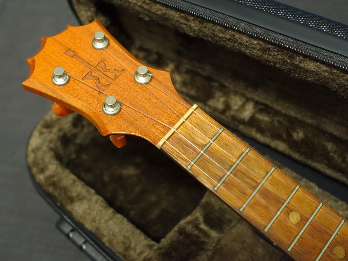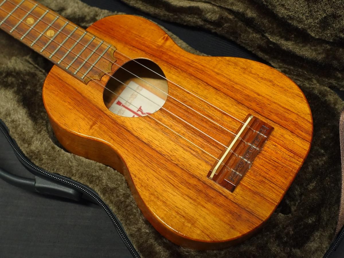 詳細な資料が無い為、外観からの判断となりますが、コア材を用いたソプラノサイズでスケール:約380mmのロングネックモデルです。