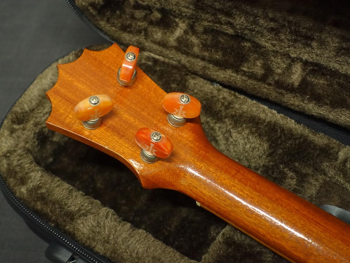 KoAlohaのロゴが入ったフリクションペグが搭載されており、現状しっかりと動作しておりますのでチューニングもスムーズに行えます。