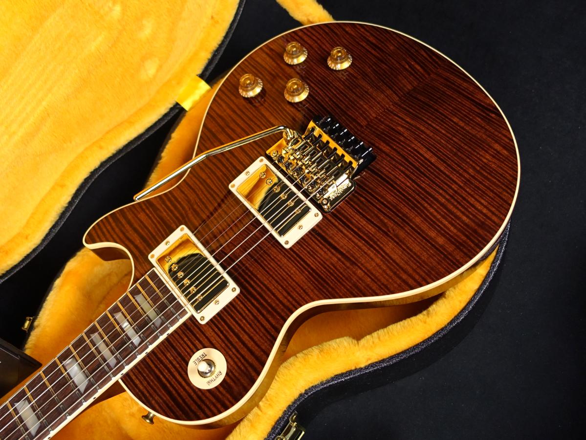 本来レスポールはTune Oブリッジに合うよう設計されている為、そのままフロイドローズを取り付けただけではジョイント角等の問題が発生しベストなセッティングにすることは困難でしたが、本機種はギブソンカスタムショップによってフロイドローズでベストなセッティングになるよう設計/開発されています。