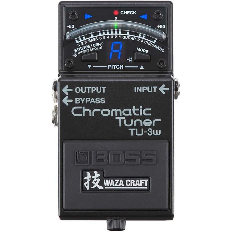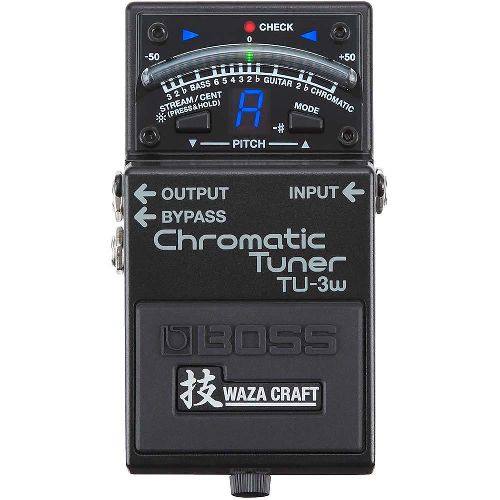 回路を一から見直すことで開発されたTU-3W は、業界標準であるTU-3の優れたチューニング機能はそのままに、バッファードとトゥルーバイパスの切り替え機能を搭載。極めてノイズに強いBOSSのバッファと、後段に接続するペダルを選ばないハイインピーダンスの信号伝達を使い分けることができます。