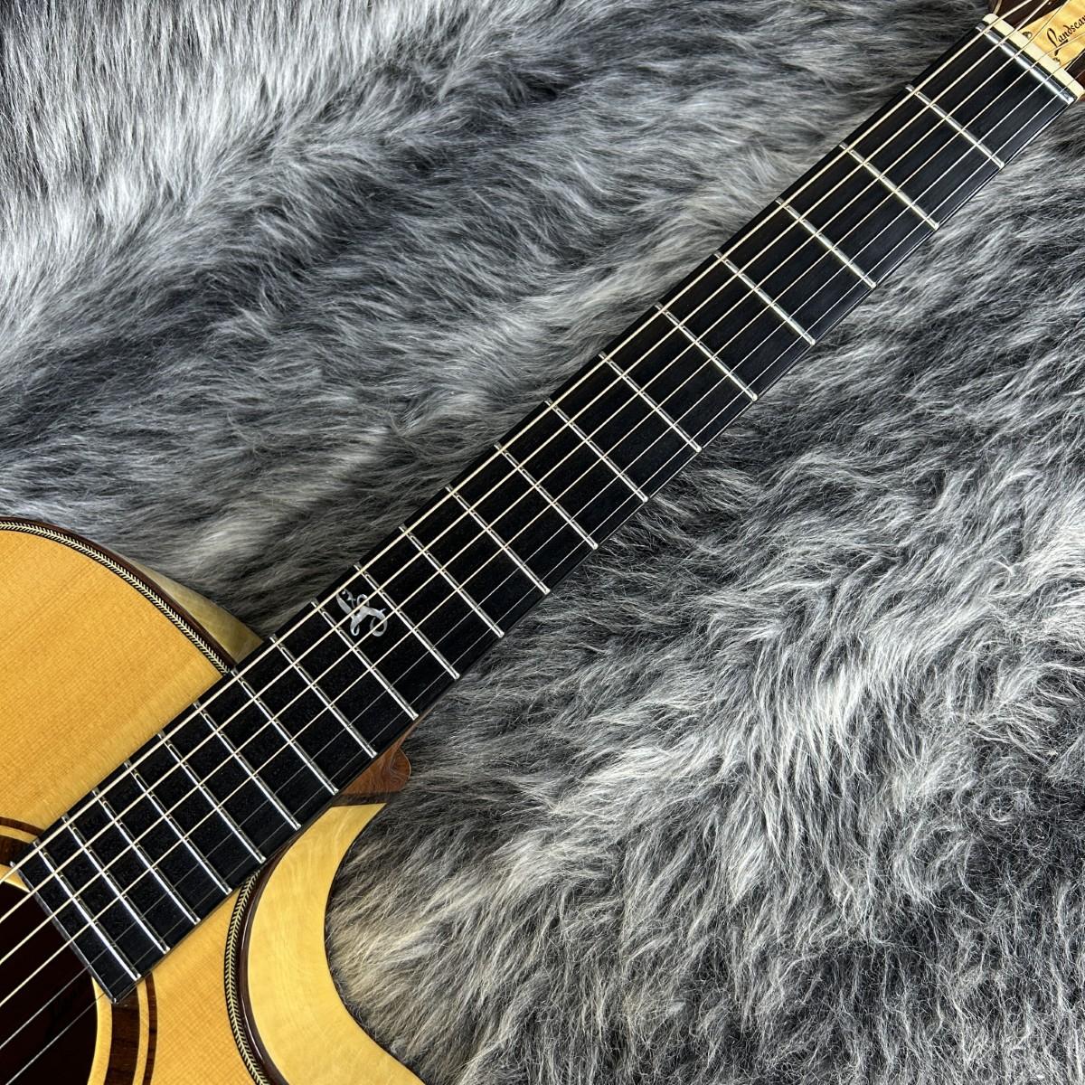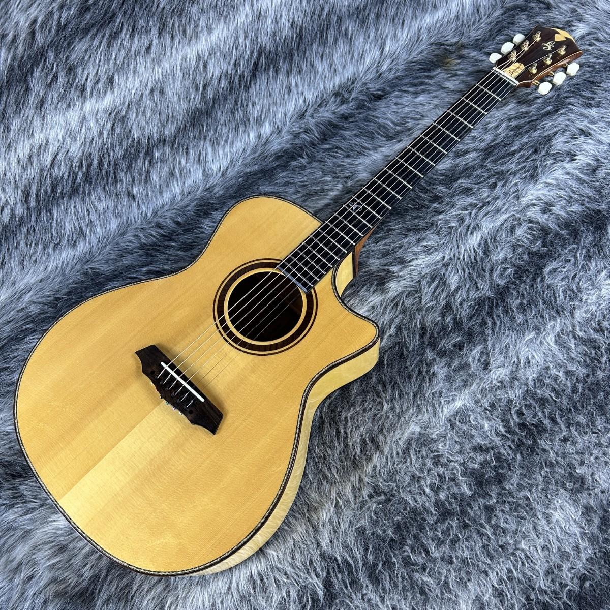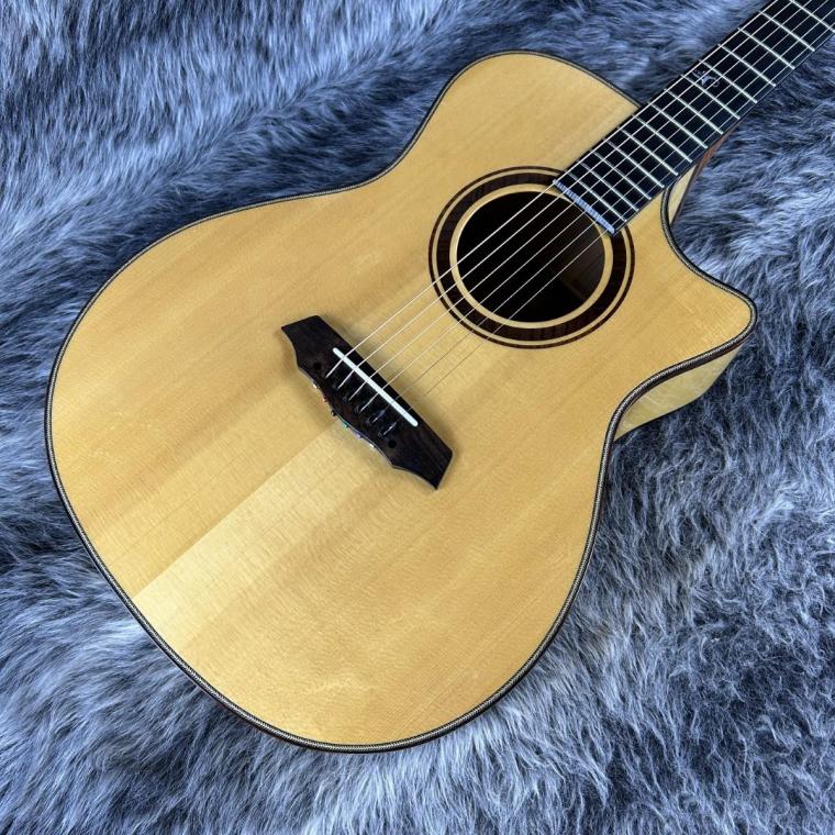 スプルース単板トップにサイド/バックにはフレイムメイプルを採用。