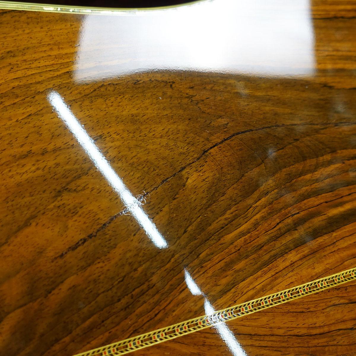 バックのハカランダ木目に沿ってニ箇所割れ補修後が見られます。パッチは無く軽度の割れで表面的な接着~塗装修正であったものと思われます。