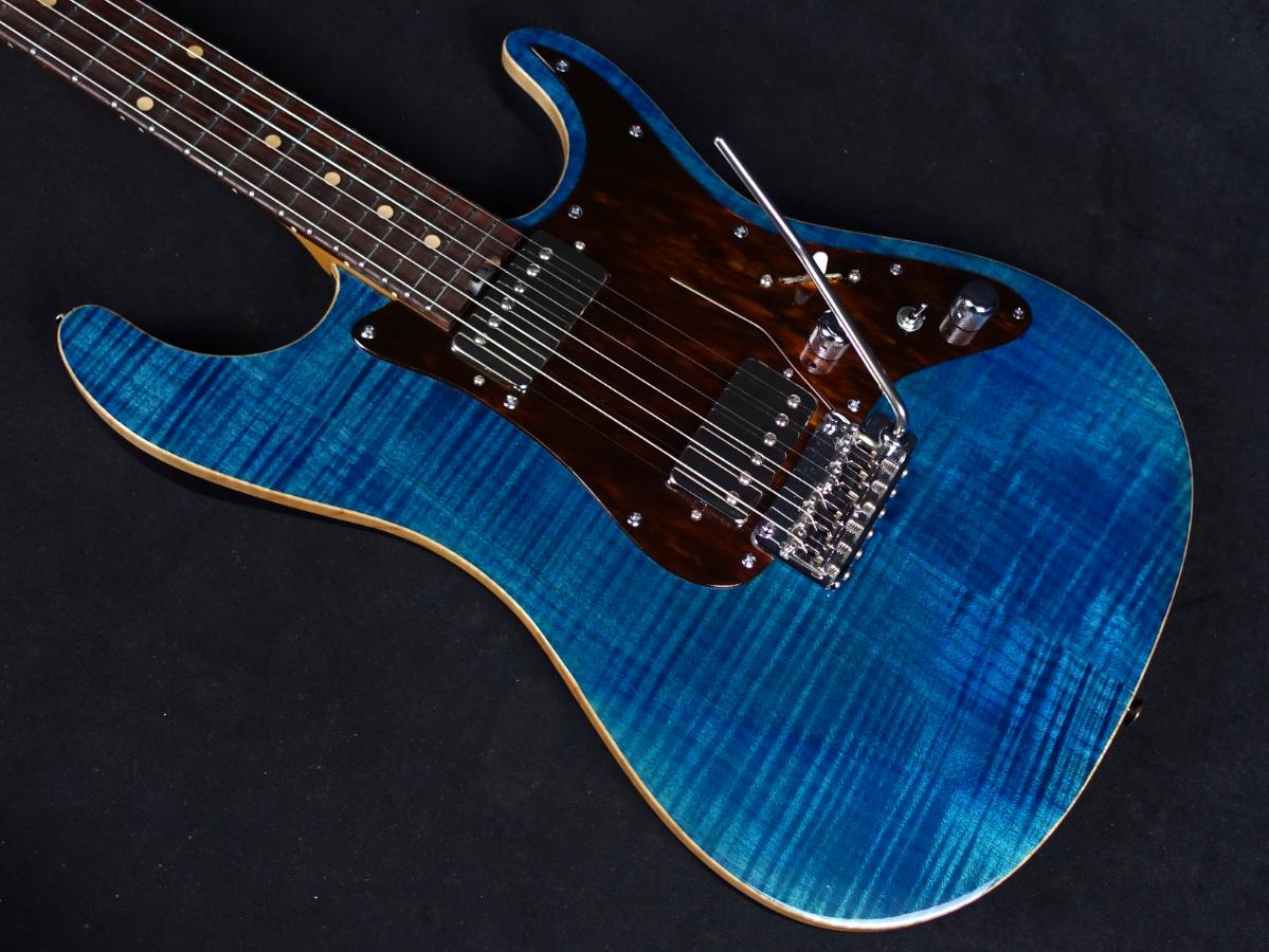 11mm厚もある4Aフレイムメイプルトップに、アフリカンマホガニーバックボディに、ローストメイプルネック、インディアンローズウッド指板を採用したウッドマテリアル。