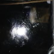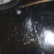 ボディバック中心部分に広範囲に渡ってバックルキズのような線状の打痕がございます。