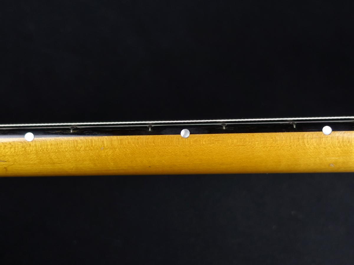 目視で確認できるようなフレットの凹みや消耗は見受けられず、7割としっかりと高さを残しており、気になるようなビビりや音詰まりなく演奏していただけます。