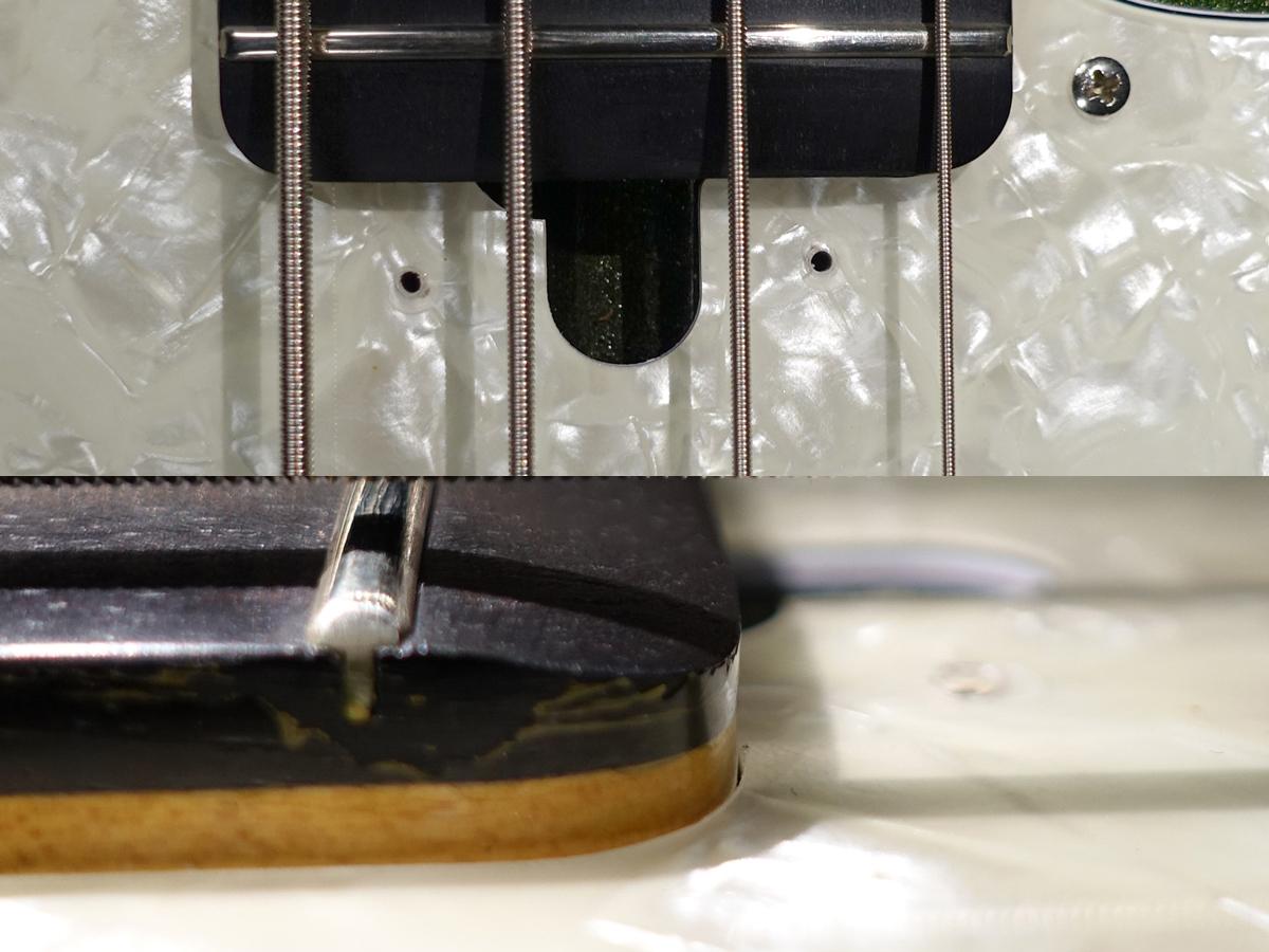 ・ブリッジ傍1弦側に一箇所ビス穴があります。