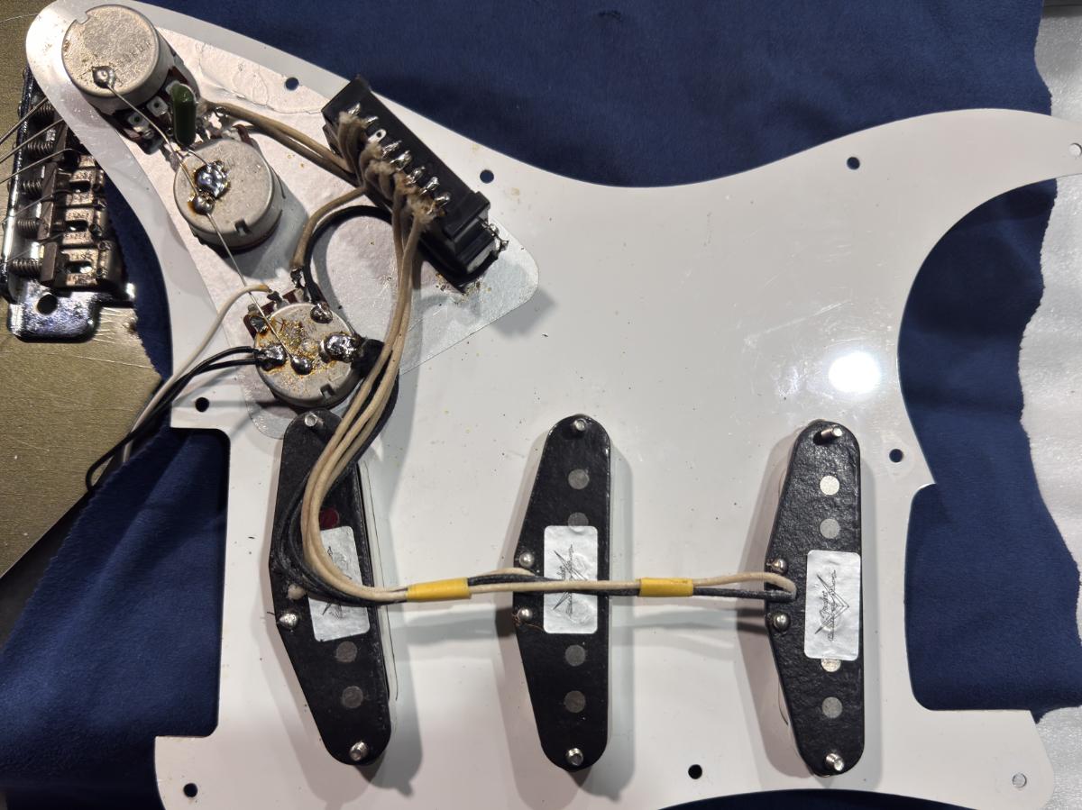 ピックアップには人気の高いFender Custom Shop製のブラックボビンタイプが搭載。おそらくですが"Fat '60s Stratocaster Pickups"と思われます。