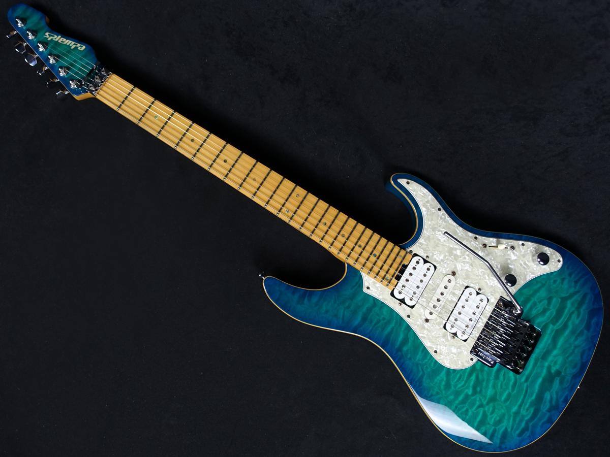ナチュラルバインディングをあしらったボディはアルダーバックに美しい木目のキルトメイプルトップを採用。その他ウッドマテリアルはハードメイプルネックにメイプル指板を採用しております。