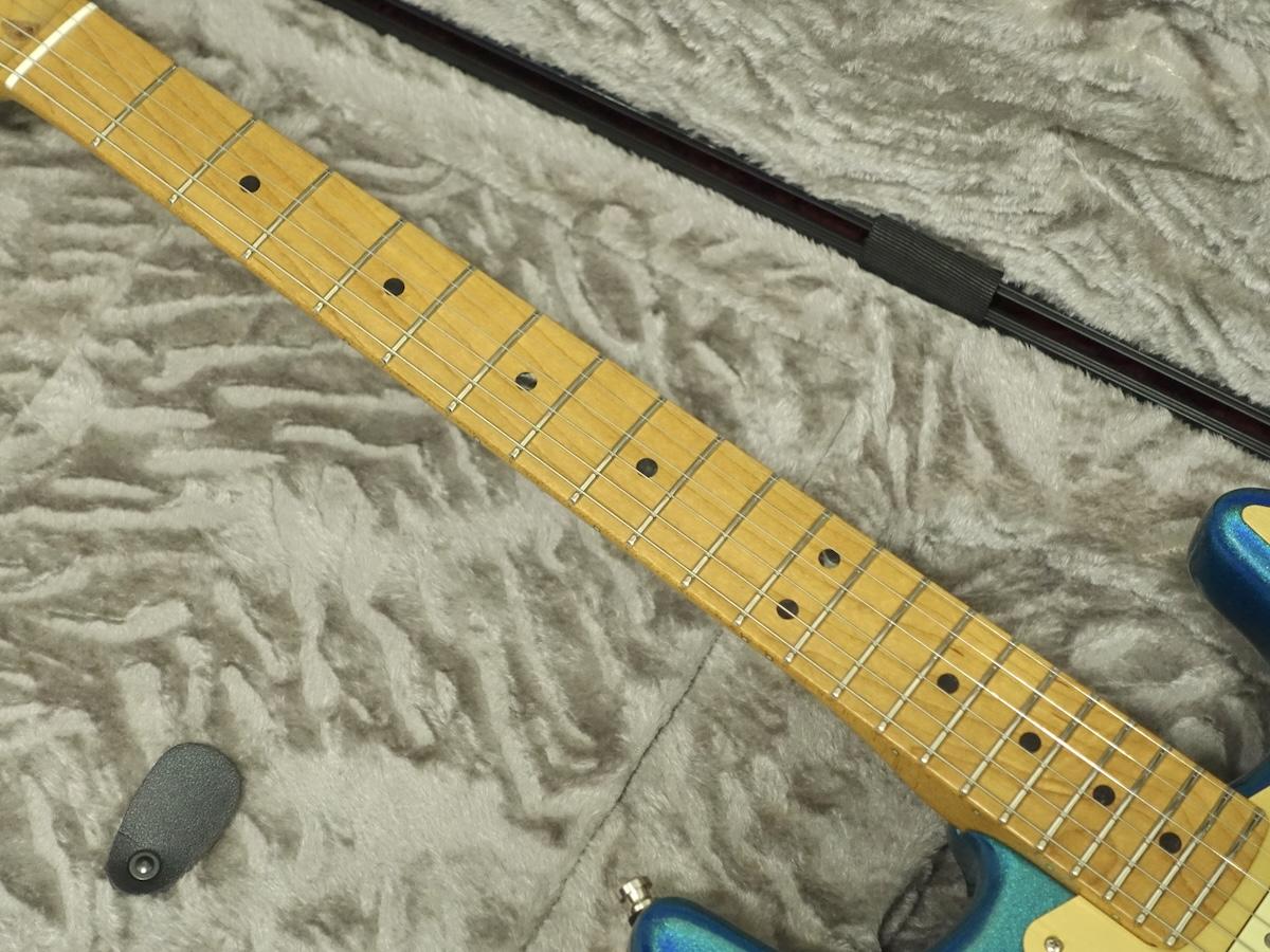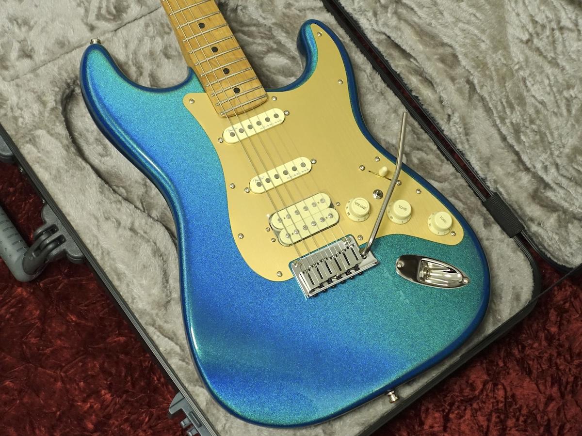 見る角度や光によって表情を変えるオーロラブルーフィニッシュは、ひと目でステージ映えを確信できる圧倒的存在感。ゴールドアノダイズドピックガードとの組み合わせも、限定モデルならではの特別感を演出しています。