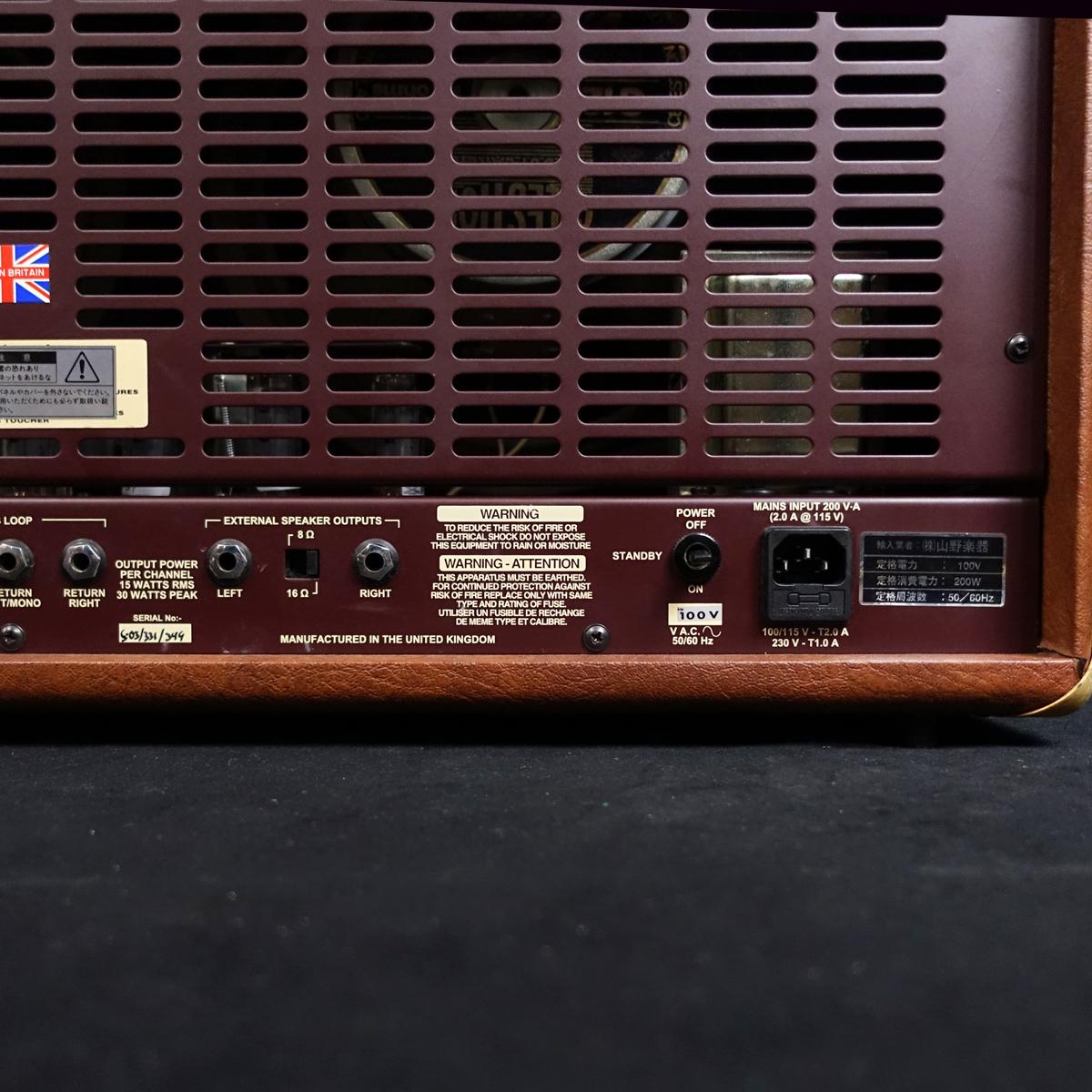 本機"GA-30RVS"はゴールドハードウェアに加え、この時期ならではのブラウントーレックスを纏った2チャンネル構成のコンボアンプになります。