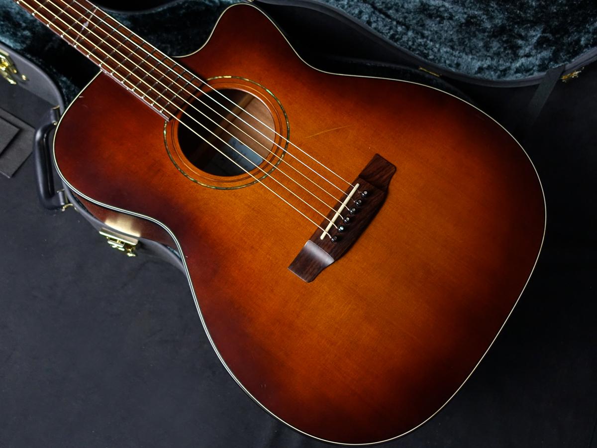 ソリッドシダートップ、ラミネートサペリサイド/バック、マホガニーネック、ローズウッド指板/ブリッジを採用したウッドマテリアル。