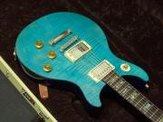 美しいフレイムメイプルトップ&マホガニーバックのダブルカッタウェイボディにマホガニーネック、ローズウッドフィンガーボードをセットしたウッドマテリアル。指板には美しいアヴァロンインレイが施されています。ピックアップはカバードのLollar Imperial Standardに交換が施され、コンデンサーはオリジナルのものから -鵺- NUE DEVICEのROSSOにアップグレードされております。