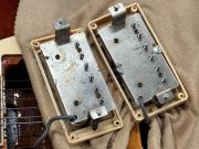 ピックアップはダブルホワイトのハムバッカーを搭載。ふたこぶのクルーソンタイプペグを搭載。