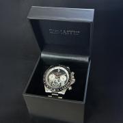 ケースとバンドは重圧感のある無垢のステンレス・スティール316Lを採用しバンドはスポーティーな3連タイプを採用。