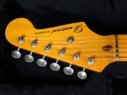 8点止めビスの1Pホワイトピックガードに、ノブやピックアップカバーなどもホワイトに統一され、ソフトVシェイプネック、ネック裏のスカンクストライプ、丸型のストリングガイドなど50年代初期を彷彿とさせるスタイル。
