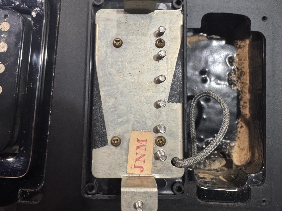 ピックアップはプレートにメーカーロゴのエンボスがない初期の"Seymour Duncan"製のJazz Moel&JB Modelが搭載されております。