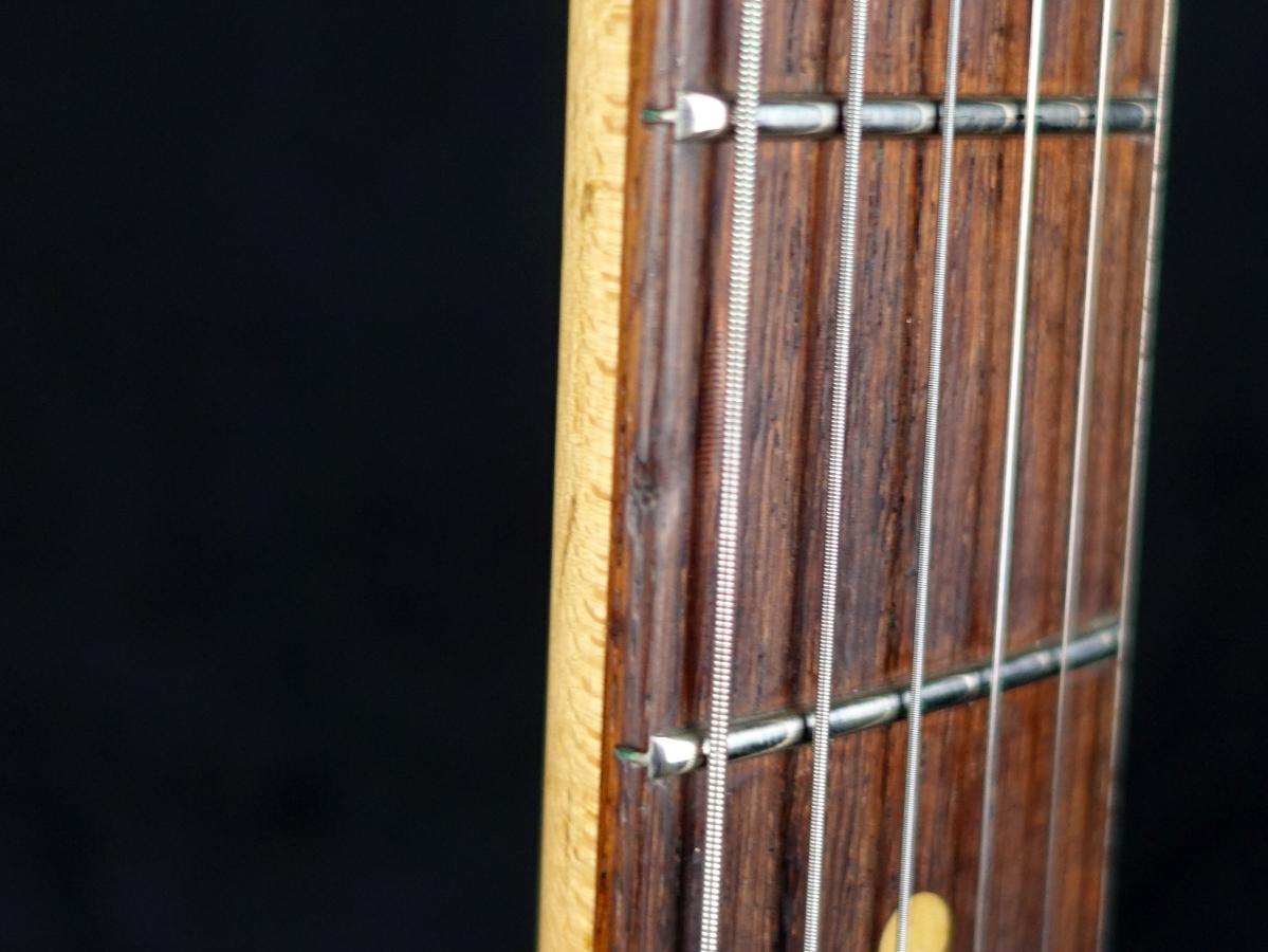 但し、フレットの残りの高さは全体的に7割程度の余裕としっかりと高さを残している上で、顕著な凹みもなく、気になるようなビビりや音詰まりはありません。