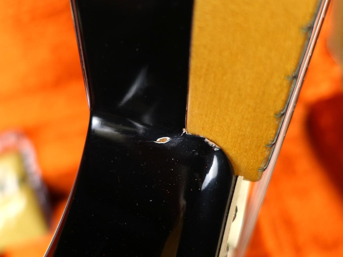トラスロッド調節位置にピックガードの割れがありますが使用に関しては問題はございません。またヘッドトップのメーカーロゴデカールの貼り直しがされております。