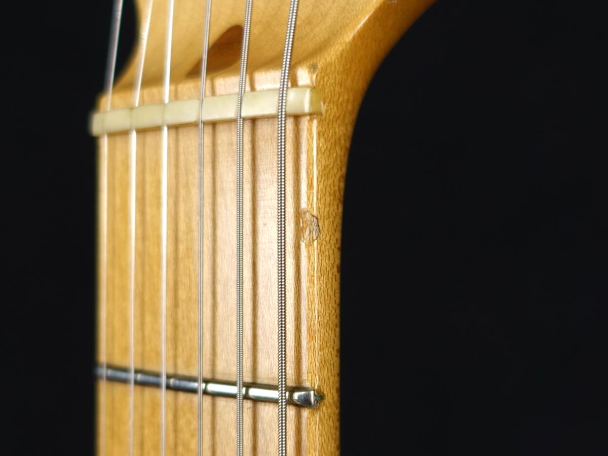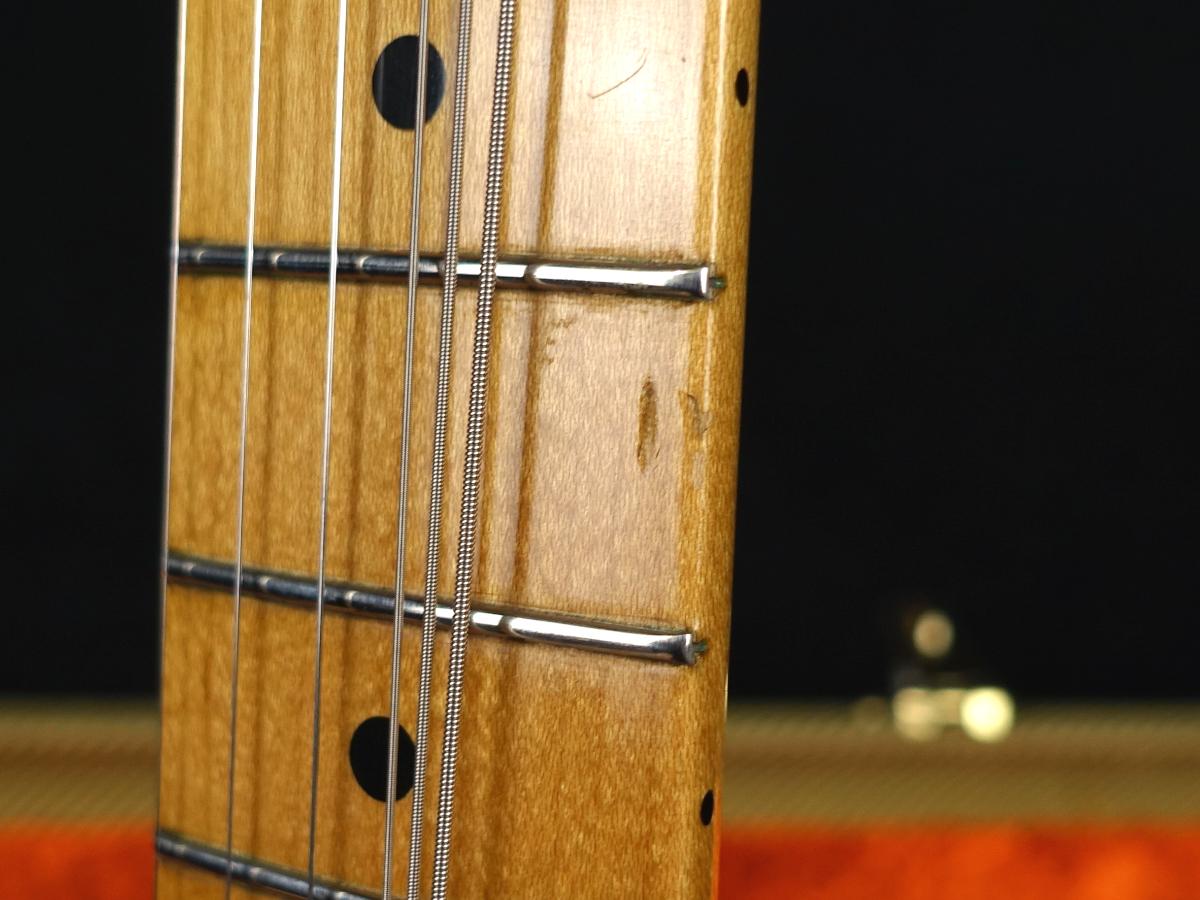 特徴的なネックグリップ、ホワイト1プライ8ホールのピックガードなど、1956年頃の特徴を見事に捉えており、15年以上前の製品ながらも完成度の高いヴィンテージ・リィシュー・モデルです。